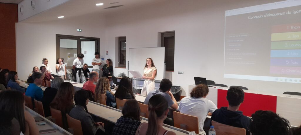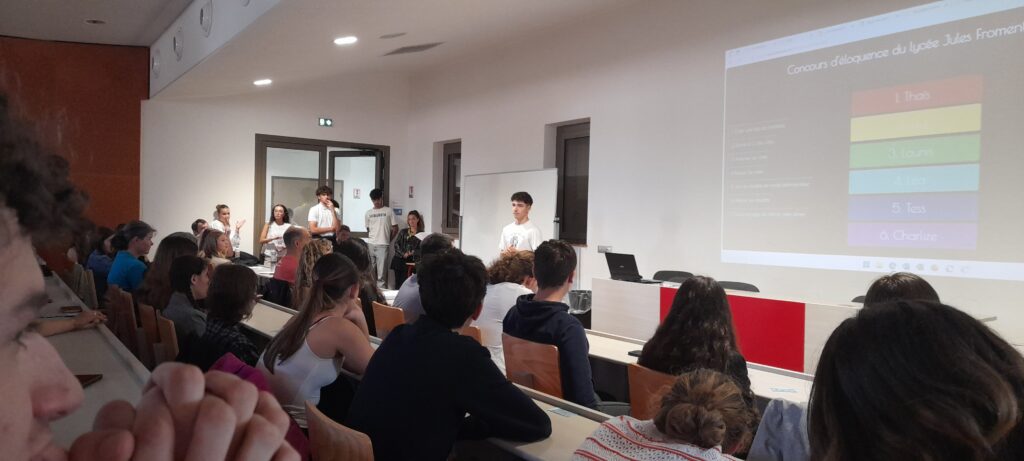 C’était le 28 mai à 13 heures dans l’amphithéâtre du lycée Jules Froment. Ils étaient six candidats à se présenter à notre traditionnel concours d’éloquence de fin d’année. Ils s’appelaient Thaïs, Téa, Launis, Léa, Tess et Charlize. Ils nous ont fait rire et ils nous ont fait pleurer en parlant de sujets aussi universels que la joie d’être une femme, le courage de surmonter ses peurs, le scandale du harcèlement, le mensonge des sentiments, la mort, et la rêverie amoureuse.